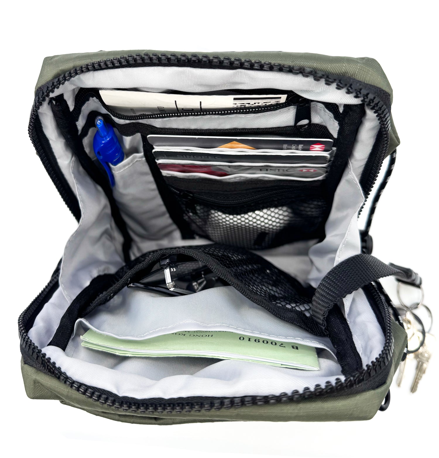 Easily access your smartphone and power bank with designated front and back compartments, and enjoy the convenience of a magnetic pocket at the front for quick retrieval of your passport.